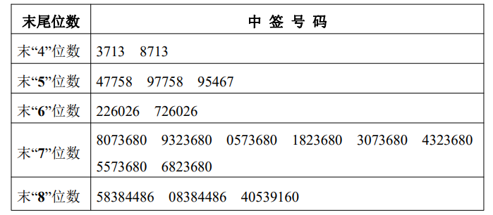 例如:申購(gòu)配號(hào)為888888-888890,公布的中簽號(hào)碼為后三位888,后四位8686,等等。