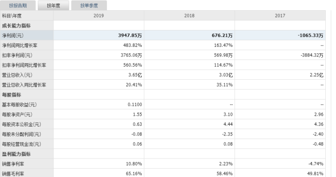 財(cái)務(wù)數(shù)據(jù)顯示,2017年至2019年,圣湘生物營(yíng)業(yè)收入分別為2.25億元、3.03億元及3.65億元 ;同期凈利潤(rùn)分別為-1065.33萬(wàn)元 、676.21萬(wàn)元 、3947.85萬(wàn)元 。