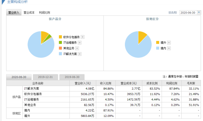 新致軟件的主營業(yè)務(wù)包括向終端客戶提供IT解決方案及IT運(yùn)維服務(wù),以及向一級(jí)軟件承包商提供軟件項(xiàng)目分包服務(wù)。報(bào)告期內(nèi),IT解決方案實(shí)現(xiàn)的收入占比超過80%,是公司收入的主要來源。