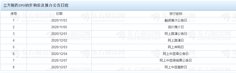 【立方制藥IPO初步詢價(jià)及推介公告日程】