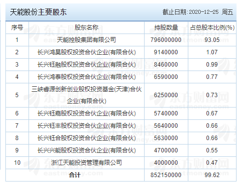 【天能股份主要股東】