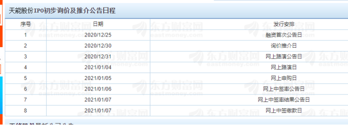 摘要: 近日科創(chuàng)板天能股份發(fā)布新股信息,688819天能股份申購(gòu)時(shí)間為2021年1月5日,申購(gòu)代碼為787819,中簽率為0.02,中簽號(hào)在1月7號(hào)早上公布,發(fā)行價(jià)格為41.79。想要打新的朋友們,本篇文章會(huì)持續(xù)更新,可以收藏,1月6日晚上本文更新中簽號(hào)結(jié)果。