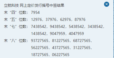 立航科技,中簽號(hào)