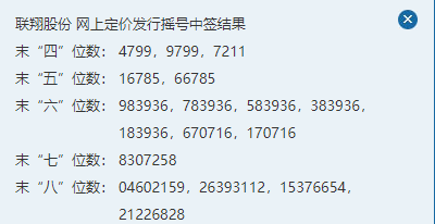 以上這篇文章內(nèi)容就是關(guān)于聯(lián)翔股份中簽號(hào),對(duì)于新股感興趣的投資伙伴可以及時(shí)關(guān)注相關(guān)個(gè)股消息和動(dòng)態(tài)。具體公布內(nèi)容如果未及時(shí)更新請(qǐng)聯(lián)系客服QQ:100800360。