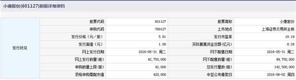 小康股份明日(5月31日)發(fā)行 頂格申購(gòu)需達(dá)42萬(wàn)市值