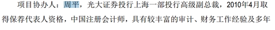 為江陰銀行提供保薦服務的是光大證券,保薦代表人是魏貴云和劉海濤,目前已分別是光大證券投行上海一部總經(jīng)理和副總經(jīng)理。項目協(xié)辦人周平已成為上海一部投行高級副總裁。2010年4月取得保薦代表人資格。