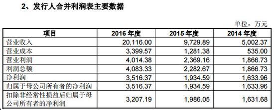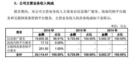 據(jù)招股書,報(bào)告期內(nèi),公司的主營(yíng)業(yè)務(wù)收入分別為5002萬元、9730萬元、2.01億元,2015年和2016年增長(zhǎng)率分別為94.51%和106.73%。