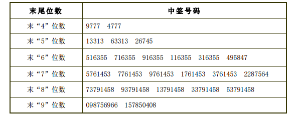 凡參與本次網(wǎng)上定價發(fā)行申購深圳市美格智能技術(shù)股份有限公司首次公開發(fā)行A股股票的投資者持有的申購配號尾數(shù)與上述號碼相同的,則為中簽號碼。中簽號碼共有48,006個,每個中簽號碼只能認購500股深圳市美格智能技術(shù)股份有限公司A股股票。