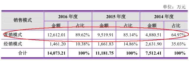 近三年來,直銷的占比越來越高,到2016年,已經(jīng)占總銷售方式的89%。