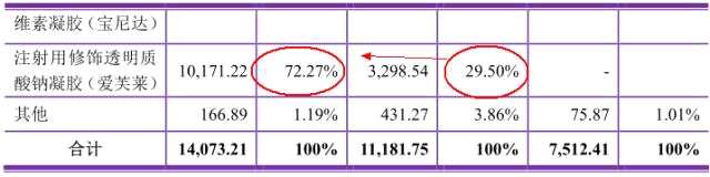 愛美客,主要銷售逸美、寶尼達(dá)和愛芙萊三款產(chǎn)品,同時(shí)也配套銷售面膜、手持式注射槍等(少量)。