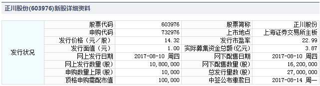 中國證券網(wǎng)訊 根據(jù)交易所公告,重慶正川醫(yī)藥包裝材料股份有限公司于2017年8月10日進(jìn)行網(wǎng)上和網(wǎng)下申購。本次公開發(fā)行股票總數(shù)量為2,700萬股?;?fù)軝C(jī)制啟動前,網(wǎng)下初始發(fā)行數(shù)量1,620萬股,占本次發(fā)行總股數(shù)的60%;網(wǎng)上初始發(fā)行數(shù)量1,080萬股,占本次發(fā)行總股數(shù)的40%。