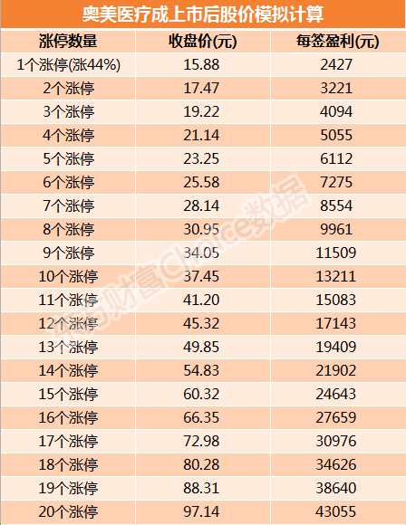 附:奧美醫(yī)療上市后每簽盈利模擬計算