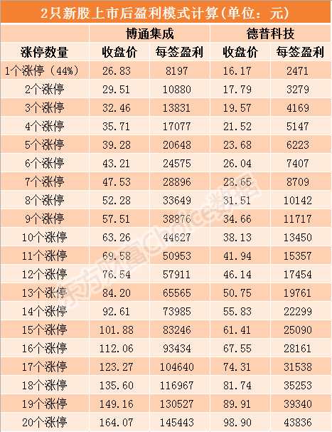 附:兩只新股上市后每簽盈利模擬計算