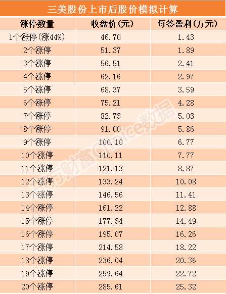 附:三美股份上市后每簽盈利模擬計算