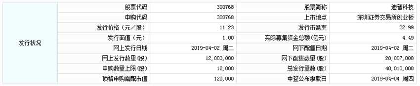 上證報(bào) 據(jù)交易所公告,迪普科技今日申購(gòu),此次發(fā)行總股數(shù)為40,010,000股,申購(gòu)代碼:300768,申購(gòu)價(jià)格:11.23元,單一賬戶申購(gòu)上限1.2萬(wàn)股,頂格申購(gòu)需配市值12萬(wàn)元。