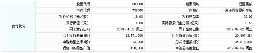 上證報(bào) 據(jù)交易所公告,博通集成今日申購(gòu),此次發(fā)行總股數(shù)為34,678,384股,申購(gòu)代碼:732068,申購(gòu)價(jià)格:18.63元,單一賬戶申購(gòu)上限1.3萬(wàn)股,頂格申購(gòu)需配市值13萬(wàn)元。