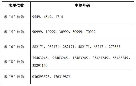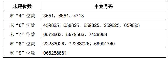 中簽結(jié)果如下: