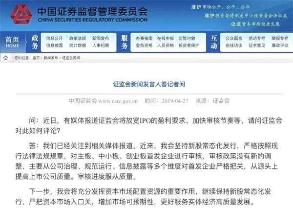摘要: 針對近期市場傳言,就在這個周六,證監(jiān)會剛剛以197字作出了回應(yīng)!有媒體近期報道“證監(jiān)會將放寬IPO的盈利要求、加快審核節(jié)奏”,對此,證監(jiān)會通過答記者問的方式回應(yīng),近來證監(jiān)會堅持新股常態(tài)化發(fā)行,嚴格按照