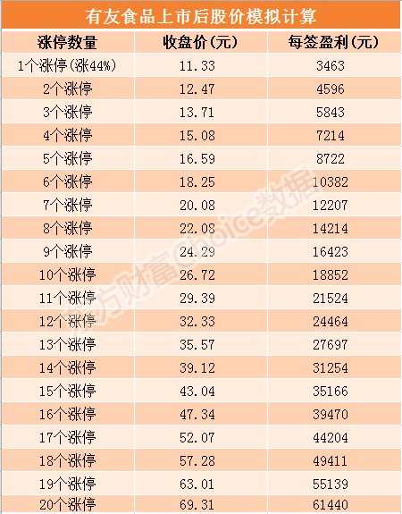 附:有友食品上市后每簽盈利模擬計(jì)算