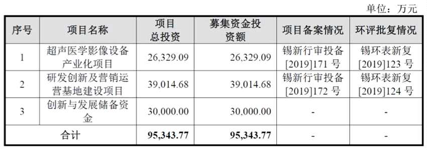 公司本次計劃發(fā)行不超過2,000萬股,募集資金將主要用于超聲醫(yī)學影像設(shè)備產(chǎn)業(yè)化、研發(fā)創(chuàng)新及營銷運營基地建設(shè)以及創(chuàng)新與發(fā)展儲備資金項目。