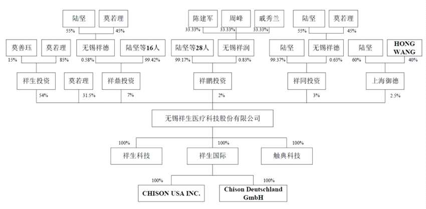 祥生醫(yī)療的股權(quán)結(jié)構(gòu)非常集中,實控人莫善玨、莫若理、陸堅通過直接和間接的方式合計持有發(fā)行前公司總股本的94.68%。公司部分高管通過祥鼎投資、上海御德等持股平臺持有公司部分股權(quán)。