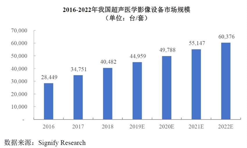 Research的數(shù)據(jù)顯示,2016年全球超聲醫(yī)學影像設(shè)備的市場規(guī)模為159,760臺/套,至2022年預(yù)計增長至282,671臺/套,年復(fù)合增長率為10.00%。