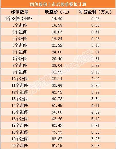 附:國(guó)茂股份上市后每簽盈利模擬計(jì)算