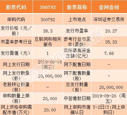 壹網(wǎng)壹創(chuàng)9月18日申購指南 頂格申購需配市值20萬