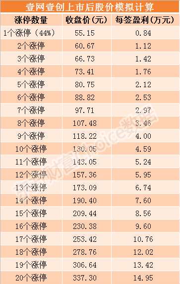附:壹網(wǎng)壹創(chuàng)上市后每簽盈利模擬計算