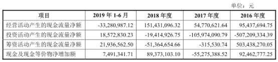 報告期內(nèi),諾禾致源經(jīng)營活動產(chǎn)生的現(xiàn)金流量凈額分別為1.43億元、9543.77萬元、5477.06萬元、1.51億元、-3328.10萬元,2019年上半年末,公司經(jīng)營性現(xiàn)金流凈額為負(fù)。
