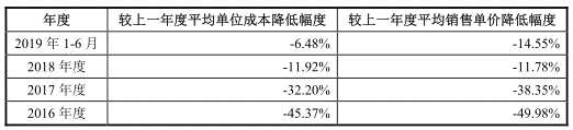 2016年至2017年,雖然公司測序服務(wù)單位成本逐步降低,而對應(yīng)的單位價格降幅更大,使得公司總體毛利率逐步下降。2018年公司單位價格下降幅度略小于測序服務(wù)單位成本下降幅度,使公司毛利率水平趨于穩(wěn)定。2019年1-6月,公司單位成本下降幅度較小,主要系上半年業(yè)務(wù)規(guī)模較小,分?jǐn)偣潭ǔ杀据^高所致,使公司毛利率較上年有所下降。