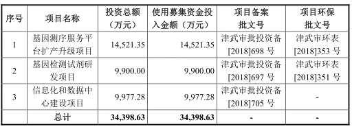 據(jù)招股書,該項目旨在對公司現(xiàn)有的基因測序服務(wù)的運營能力進行整體升級,通過先進的高通量基因測序平臺和自動化設(shè)備及系統(tǒng),為更多的科研機構(gòu)提供領(lǐng)先的基因測序和生物信息技術(shù)服務(wù)方面的基因組學(xué)解決方案。