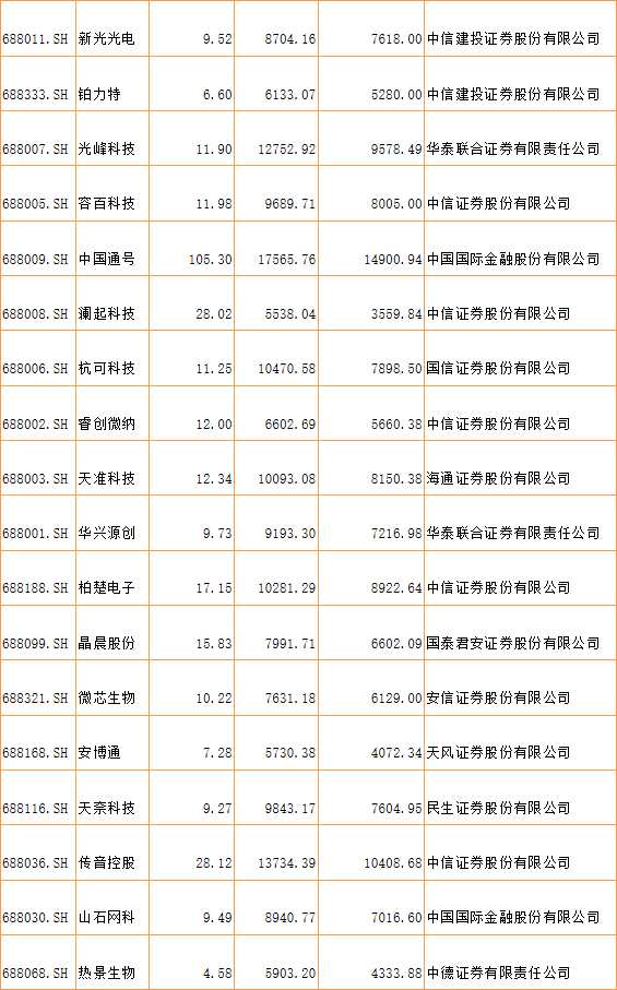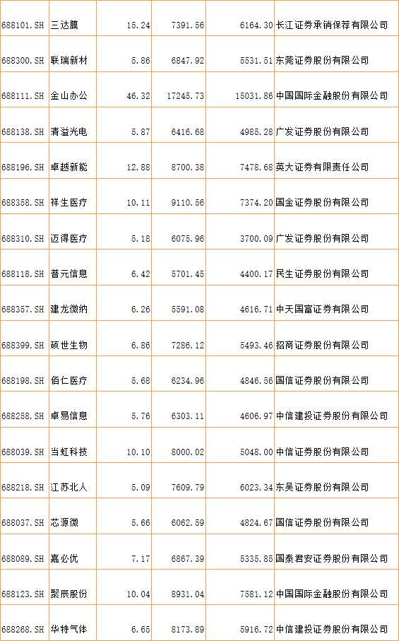 從募集資金來看,【中國通號(688009)、股吧】以募集資金105.30億元位列第一,金山辦公以46.32億元募集資金位居第二,排名第三為傳音控股,募集資金28.12億元。