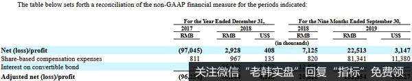 根據(jù)非美通用會(huì)計(jì)準(zhǔn)則(Non-GAAP)衡量,2017年、2018年和2019年前九個(gè)月凈利潤(rùn)分別為-9623.4萬(wàn)元、3014.4萬(wàn)元和1.04億元。