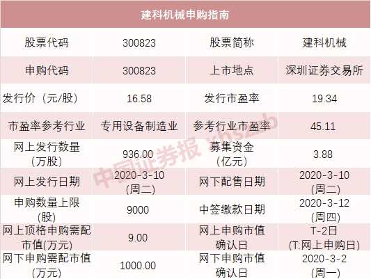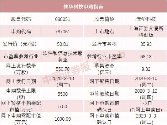 摘要: 本周將迎來3只新股申購,分別是今天(3月10日)的科創(chuàng)板新股佳華科技、創(chuàng)業(yè)板新股建科機械,以及明天(3月11日)的滬市主板新股愛麗家居。周二(3月10日):佳華科技(申購代碼:787051)發(fā)行價50