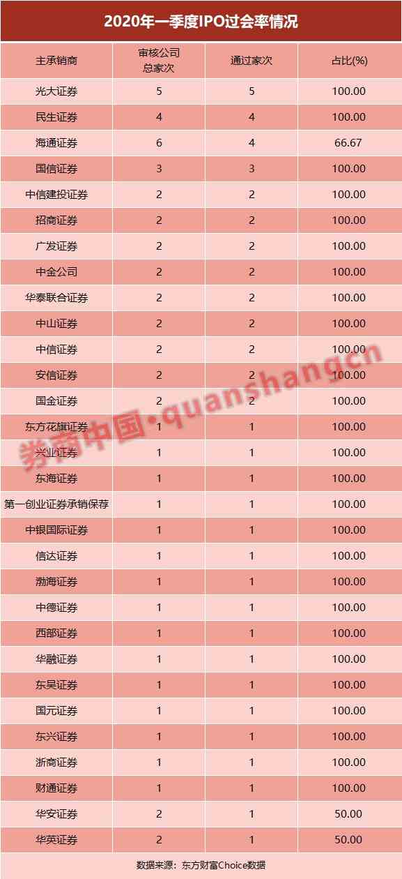 由于過會率高企,有27家投行上會項目均100%過會,其中光大證券有5個項目過會,成“最大贏家”,民生證券、海通證券有4個項目過會,國信證券有3個項目過會。