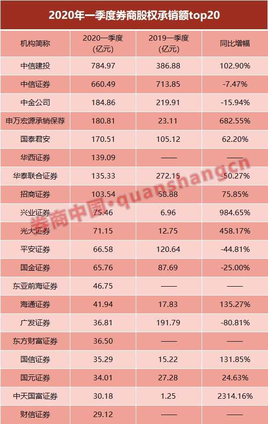 摘要: 疫情到底對投行業(yè)務(wù)有多大影響,隨著一季度落下帷幕,行業(yè)數(shù)據(jù)或許可窺見一二。疫情防控之下,投行這個“發(fā)動機(jī)”能為券商行業(yè)積蓄多少力量?記者據(jù)梳理,截至3月31日,今年來證券行業(yè)合計主承銷金額2.37萬億