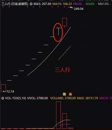 然而三人行股價打開一字漲停后,又連續(xù)3個漲停,以最新的249.04元的收盤價,三人行中一簽的盈利金額可達(dá)到18.84萬元。