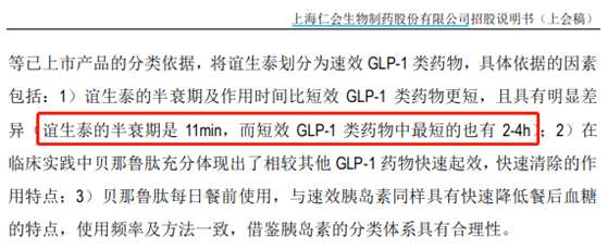 誼立泰為何推廣不利?仁會生物在招股說明書的同類競品對比中,貝那魯肽(誼立泰)半衰期僅11分鐘,而其他公司都是按照小時來計(jì)算的。轉(zhuǎn)換成注射頻率,仁會生物的誼立泰,要餐前一天三次打針。