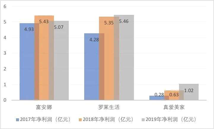 富安娜、羅萊生活、真愛美家2017年—2019年凈利潤對比情況