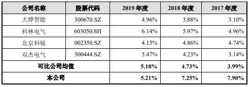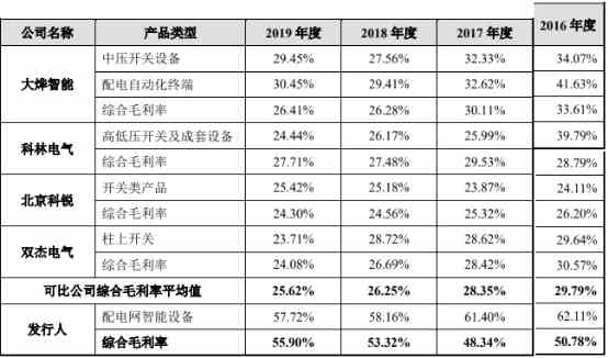宏力達招股書稱,發(fā)行人的業(yè)務(wù)及產(chǎn)品目前尚無嚴格可比的上市公司,傳統(tǒng)開關(guān)類生產(chǎn)企業(yè)普遍毛利率較低,而業(yè)務(wù)模式較為創(chuàng)新的上市公司中,柱上開關(guān)類產(chǎn)品業(yè)務(wù)較少或未單獨披露。大燁智能、科林電氣、北京科銳、雙杰電氣均有開關(guān)類產(chǎn)品,其開關(guān)類產(chǎn)品毛利率在25%~30%之間,報告期內(nèi),公司的智能柱上開關(guān)毛利率約為56%,明顯高于同行業(yè)上市公司的開關(guān)類產(chǎn)品。公司的智能柱上開關(guān)為行業(yè)內(nèi)具有先進性的物聯(lián)化、智能化和集成化的智能設(shè)備,深度融合了一二次設(shè)備、傳感器、網(wǎng)絡(luò)設(shè)備、通信設(shè)備,產(chǎn)品附加值高,市場競爭小,產(chǎn)品售價較高,因此其毛利率顯著高于同行業(yè)的傳統(tǒng)開關(guān)類產(chǎn)品?!?a href="http://m.xfjyyzc.com/gegu/603666/" target="_blank" title="億嘉和(603666)股票分析,新聞,資金流向,財務(wù)數(shù)據(jù)" >億嘉和(603666)、股吧】的主營業(yè)務(wù)是為電力系統(tǒng)提供以數(shù)據(jù)采集處理為核心的巡檢機器人,雖然億嘉和不經(jīng)營開關(guān)類設(shè)備,但其產(chǎn)品在細分領(lǐng)域內(nèi)較為領(lǐng)先,經(jīng)營模式較為創(chuàng)新,與公司有類似特點。2017年至2019年,億嘉和的毛利率為67.22%、61.55%和63.64%,毛利率較高,系億嘉和產(chǎn)品技術(shù)和質(zhì)量較為領(lǐng)先的體現(xiàn)。公司智能柱上開關(guān)在一二次融合領(lǐng)域內(nèi)具有較強的技術(shù)優(yōu)勢,因此具有較高的銷售毛利率。