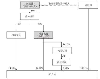 陳嘉偉系宏力達實際控制人。截至招股說明書簽署日,陳嘉偉通過鴻元投資、越海投資、鴻元能源間接控制宏力達46.76%的股份;俞旺幫為陳嘉偉的岳父,系陳嘉偉的一致行動人,俞旺幫直接持有宏力達10.31%的股份;因此,陳嘉偉及其一致行動人合計控制宏力達57.07%的股份。