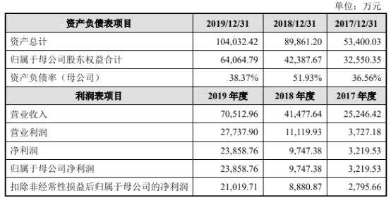 2017年至2019年,宏力達營業(yè)收入分別為2.52億元、4.15億元、7.05億元,歸屬于母公司凈利潤分別為3219.53萬元、9747.38萬元、23858.76萬元。
