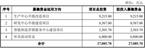 步科股份本次擬公開發(fā)行股票數(shù)量不超過2100萬股,不低于發(fā)行后總股本的25%,發(fā)行后總股本不超過8400萬股。其擬募集資金2.71億元,其中8215萬元擬用于生產(chǎn)中心升級改造項目,8567萬元擬用于研發(fā)中心升級建設(shè)項目,2503.70萬元擬用于智能制造營銷服務(wù)中心建設(shè)項目,6800萬元擬用于補充流動資金。