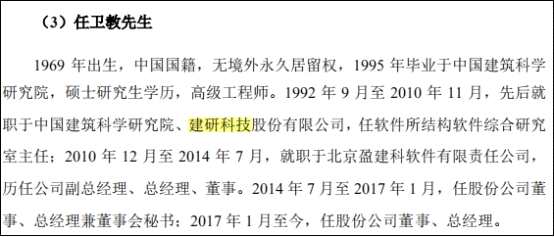 董事會(huì)現(xiàn)任成員中,陳岱林曾任建研科技副總裁;任衛(wèi)教曾任建研科技軟件所結(jié)構(gòu)軟件綜合研究室主任。陳岱林2014年7月至今,任盈建科董事長(zhǎng);任衛(wèi)教2017年1月至今,任盈建科董事、總經(jīng)理。