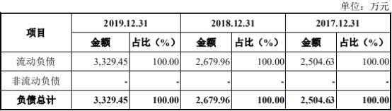 2014年至2019年,盈建科負(fù)債總計(jì)分別為869.65萬(wàn)元、1416.55萬(wàn)元、2805.08萬(wàn)元、2504.63萬(wàn)元、2679.96萬(wàn)元、3329.45萬(wàn)元;其中,流動(dòng)負(fù)債分別為855.65萬(wàn)元、1416.55萬(wàn)元、2805.08萬(wàn)元、2504.63萬(wàn)元、2679.96萬(wàn)元、3329.45萬(wàn)元。