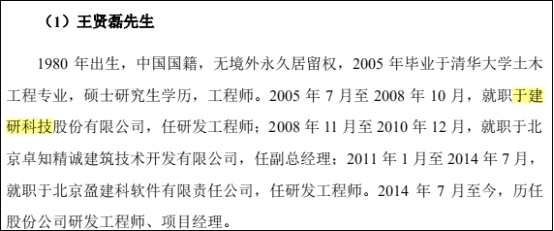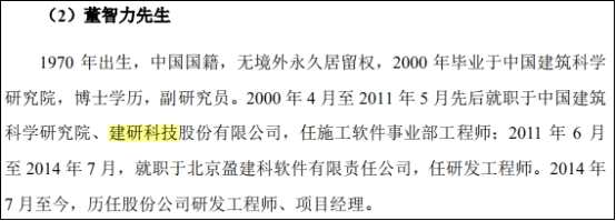 招股書顯示,盈建科由陳岱林等21人共同出資設(shè)立,2014年7月變更為股份公司。信息顯示,陳岱林曾任建研科技副總裁,另有5名董事、監(jiān)事、核心人員均曾在建研科技任職。其中,任衛(wèi)教曾任建研科技軟件所結(jié)構(gòu)軟件綜合研究室主任;梁博曾任建研科技研發(fā)工程師;李保盛曾任建研科技銷售員、經(jīng)理;王賢磊曾任建研科技研發(fā)工程師;董智力曾任建研科技施工軟件事業(yè)部工程師。