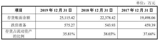 2016年至2019年,宸展光電的存貨賬面余額為1.50億元、1.95億元、2.24億元和2.51億元,分別占流動資產(chǎn)的31.36%、37.66%、38.03%和35.81%。