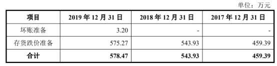 2016年末至2019年末,宸展光電對存貨分別計提跌價準(zhǔn)備214.42萬元、459.39萬元、543.93萬元和575.27萬元。
