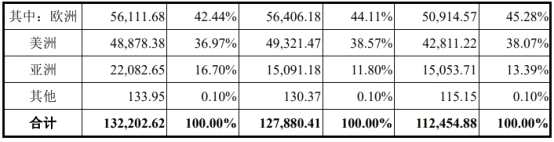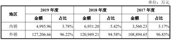 2016年至2019年,宸展光電的產(chǎn)品主要出口到美洲、歐洲、亞洲等地區(qū),外銷收入占比分別達(dá)到98.86%、96.83%、94.58%和96.22%。